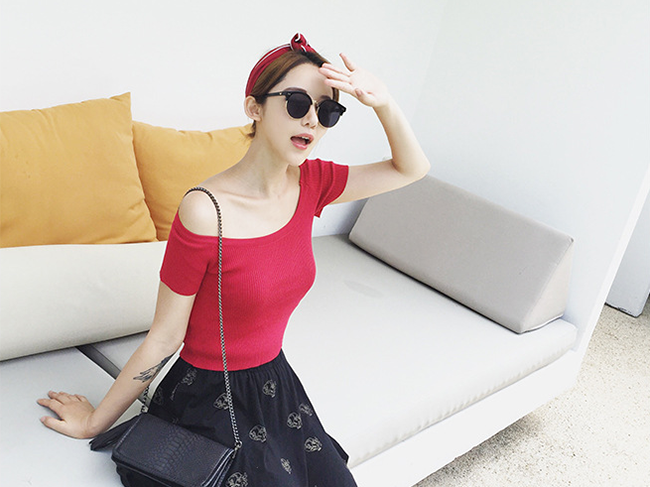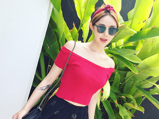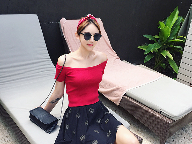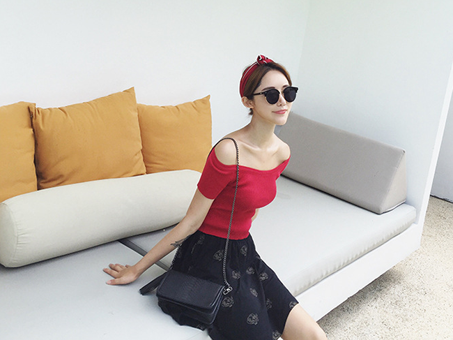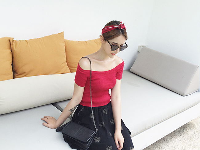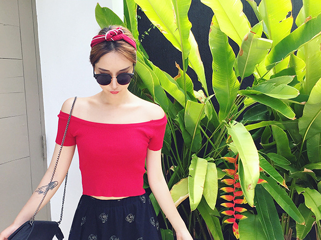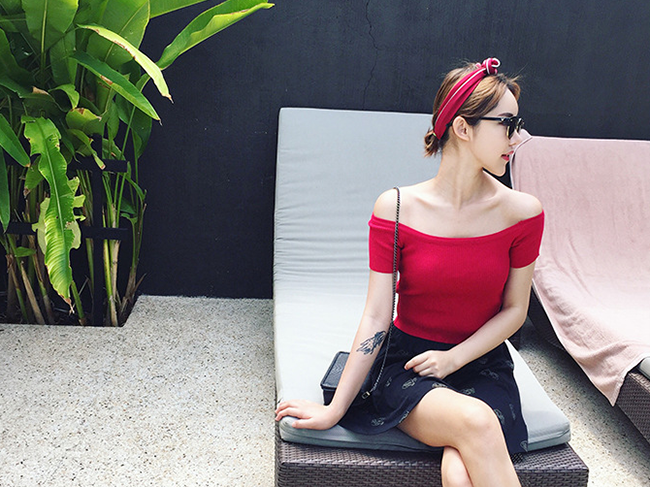 包邊雪紡×兔耳鐵絲髮帶×石榴紅