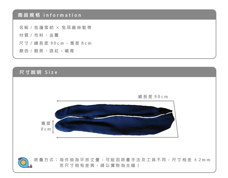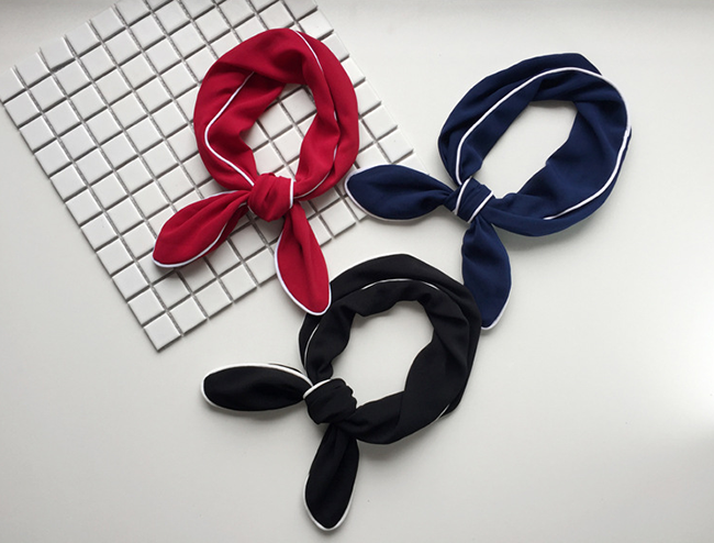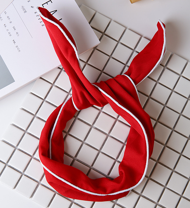 - 包邊雪紡×兔耳鐵絲髮帶×石榴紅