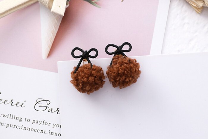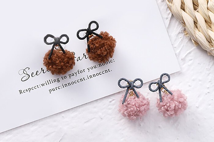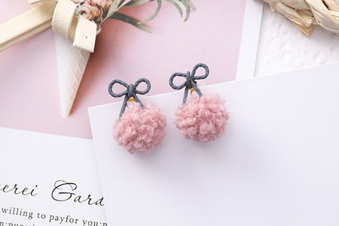 蝴蝶結捲捲毛球×吊墜耳環×共二色-第1張