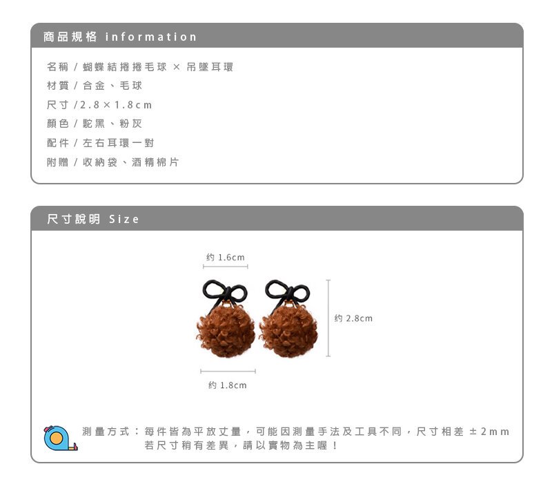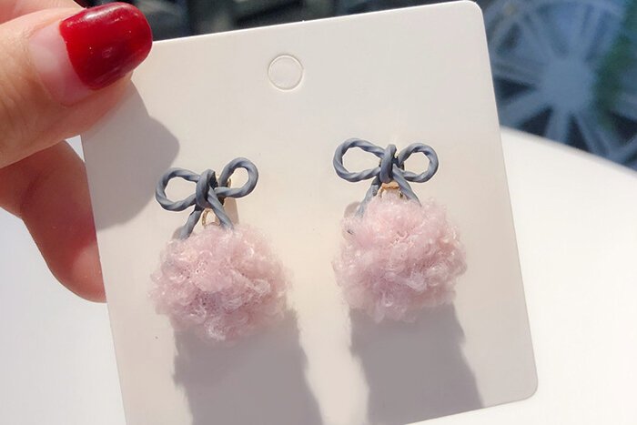 蝴蝶結捲捲毛球×吊墜耳環×共二色-第6張