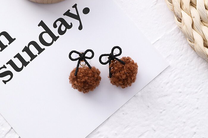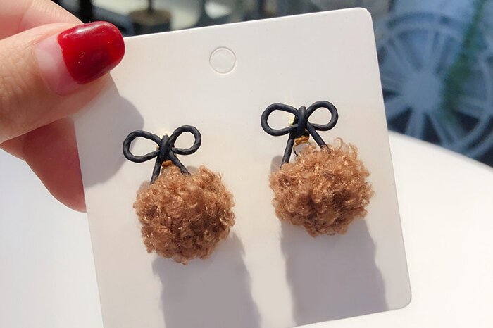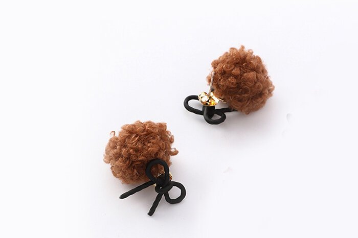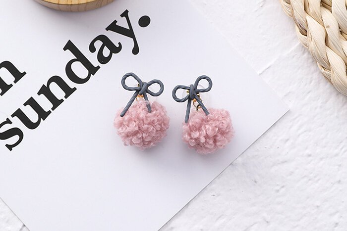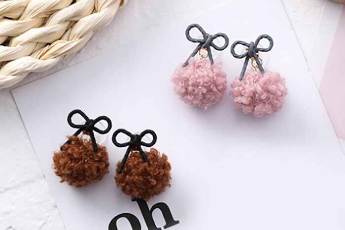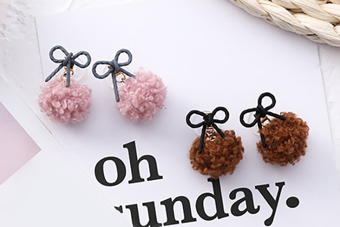蝴蝶結捲捲毛球×吊墜耳環×共二色-第5張