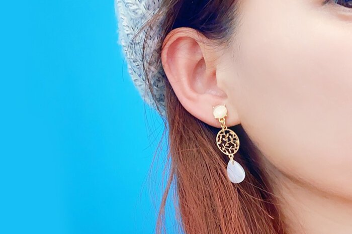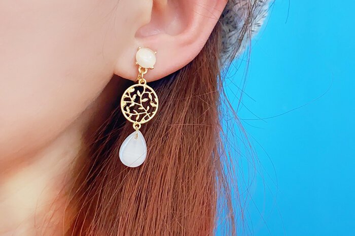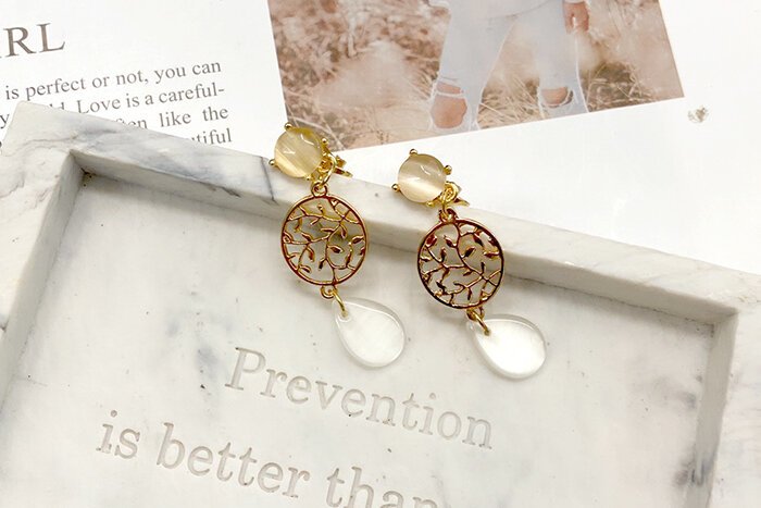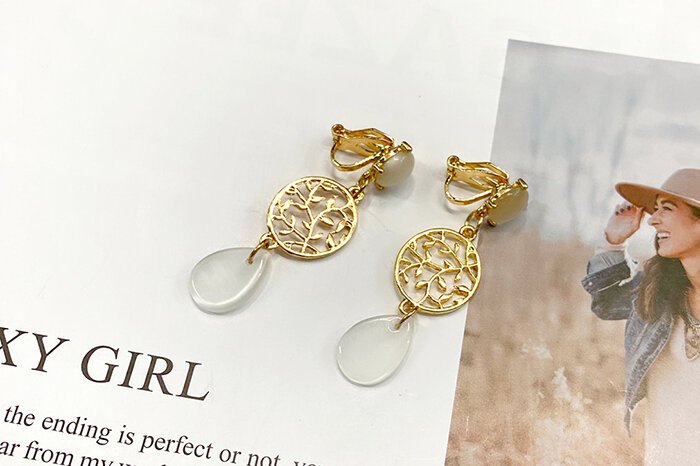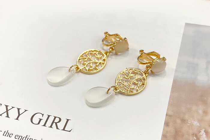 ▶名稱/鏤空樹貓眼石水滴×三角耳夾