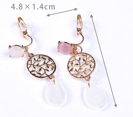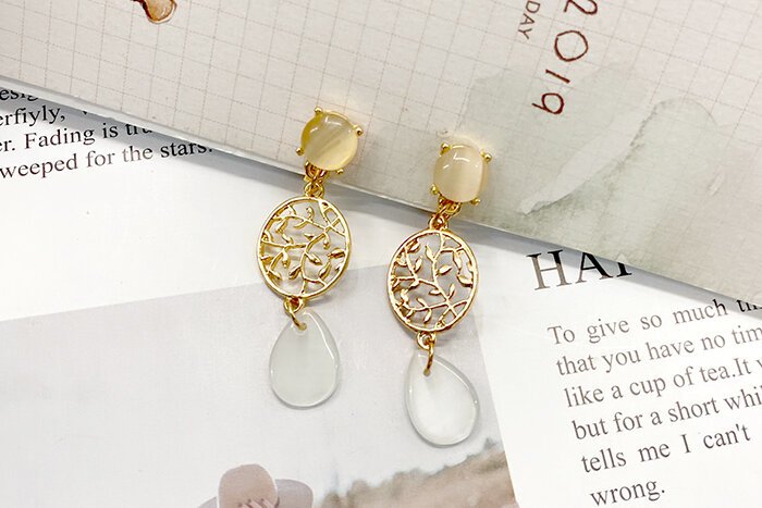鏤空樹貓眼石水滴×三角耳夾-第4張