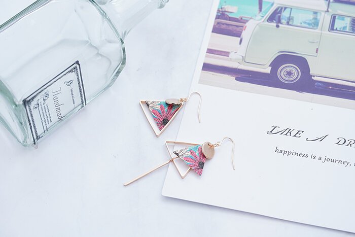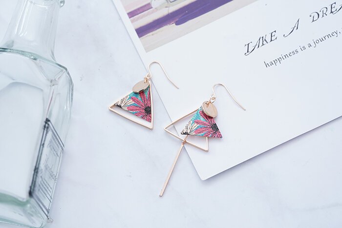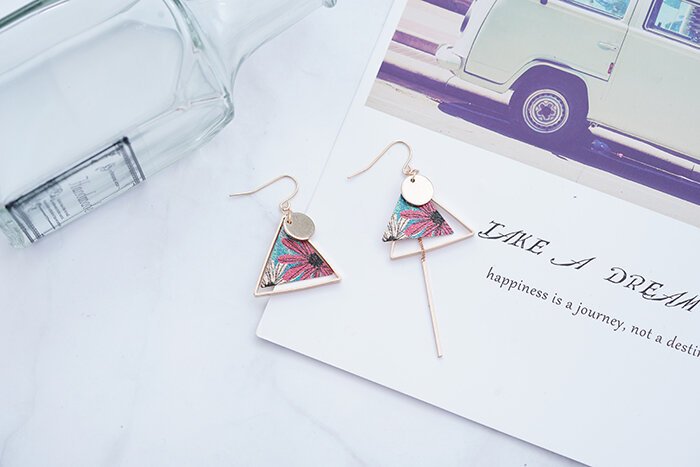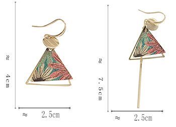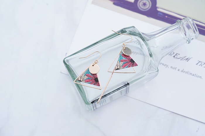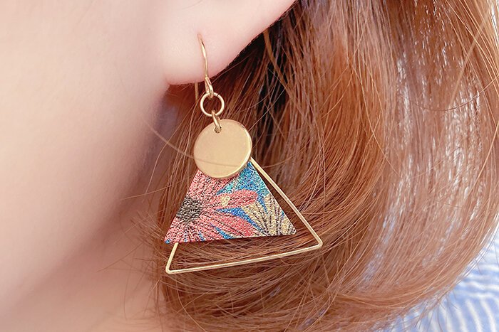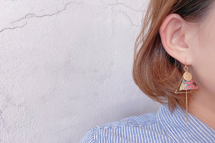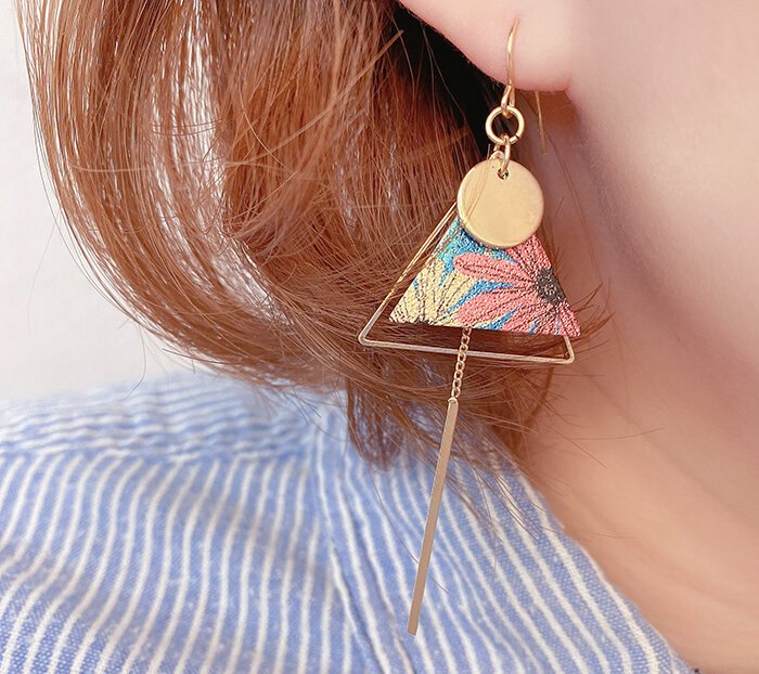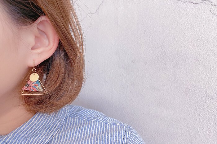 ▶名稱/花朵彩繪金屬三角形×不對稱吊墜耳環