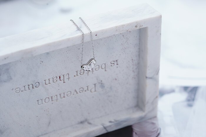 不可用力碰撞/不可接近化學品/避免接近溫泉或海水/清潔時請以拭銀布擦拭