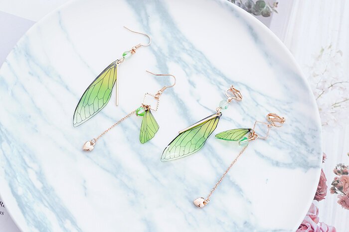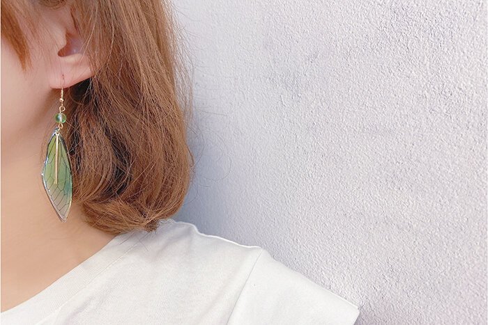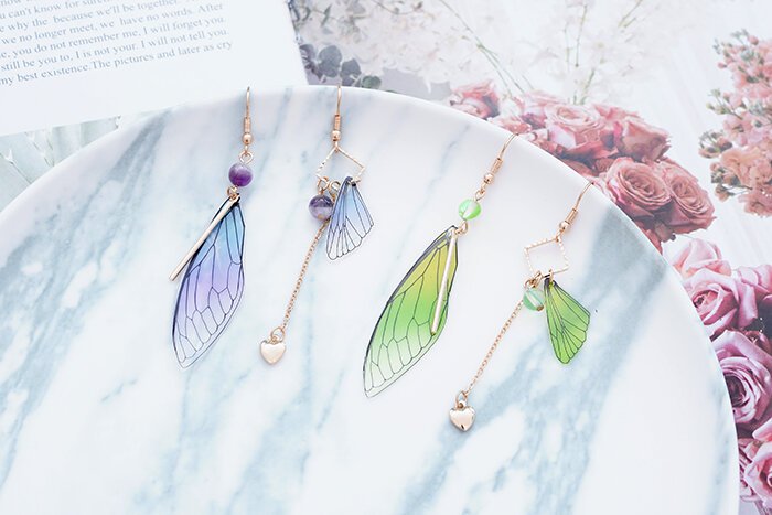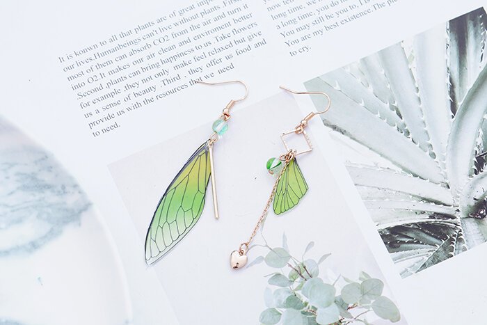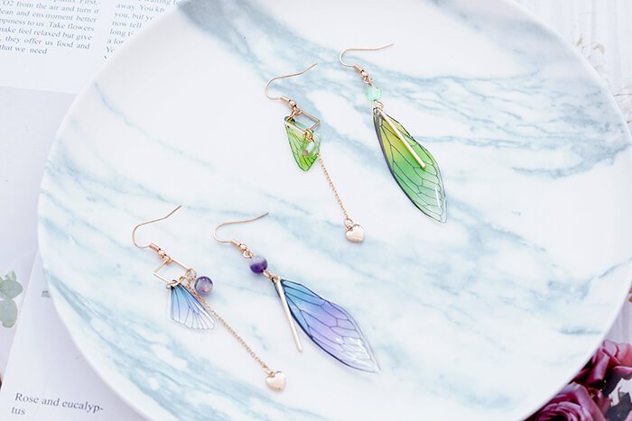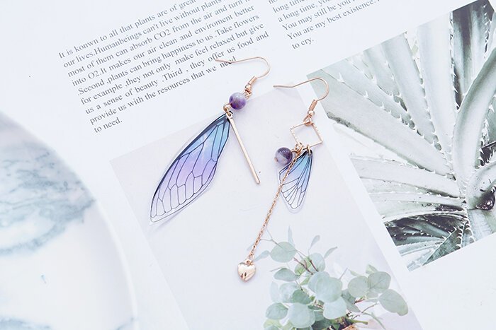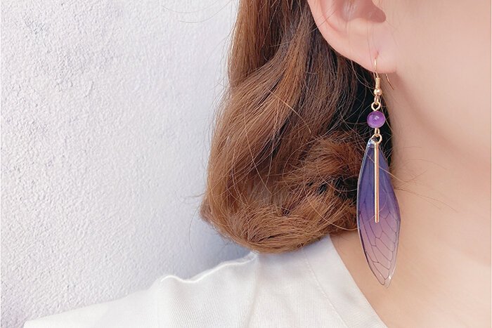 ▶名稱/蟬翼漸層暈染×不對稱吊墜耳環×共二色