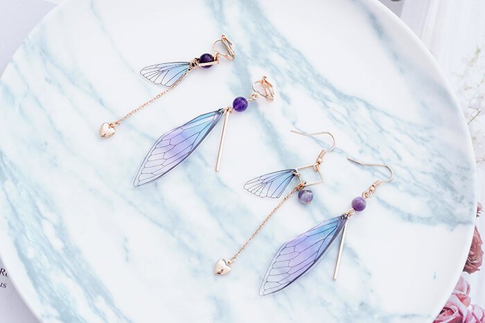 蟬翼漸層暈染×不對稱吊墜耳勾×共二色-第6張