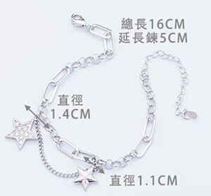 ▶尺寸/全長16cm、延長鍊5cm、晶鑽星星1.4CM、光芒1.1CM