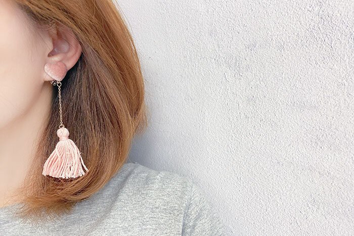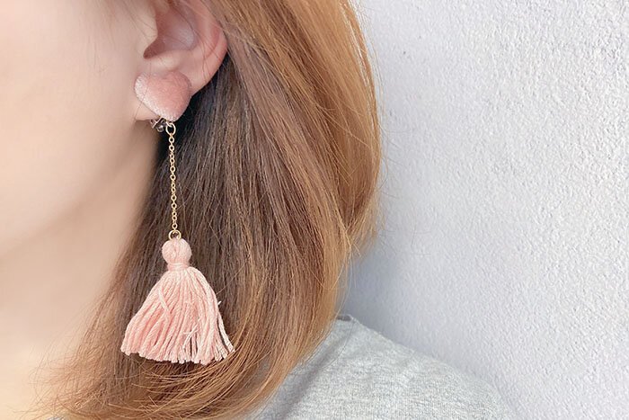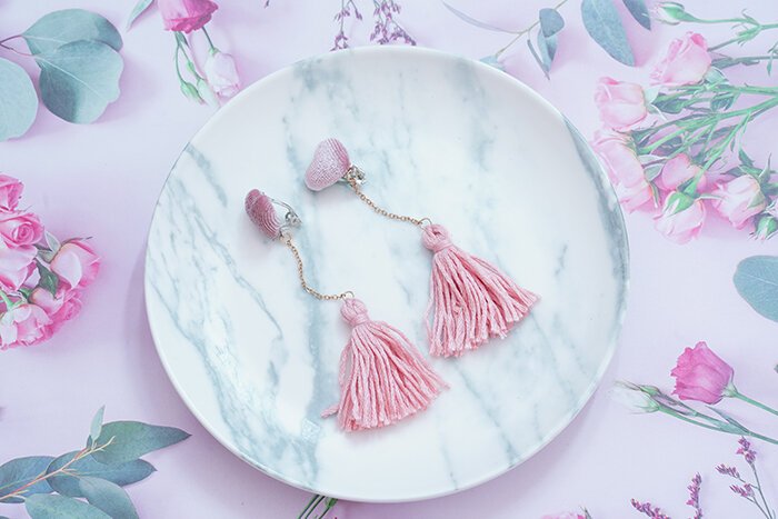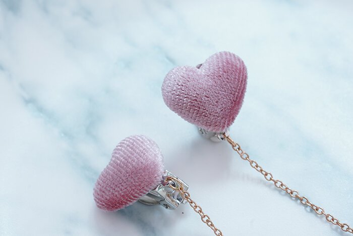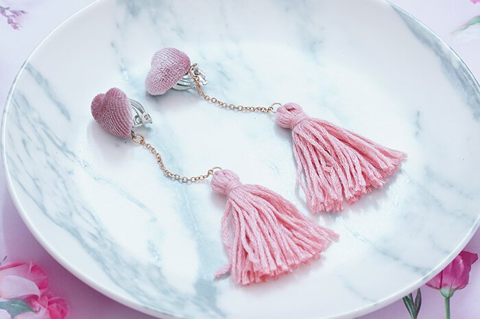 ▶名稱/粉絨愛心毛線流蘇×吊墜三角耳夾