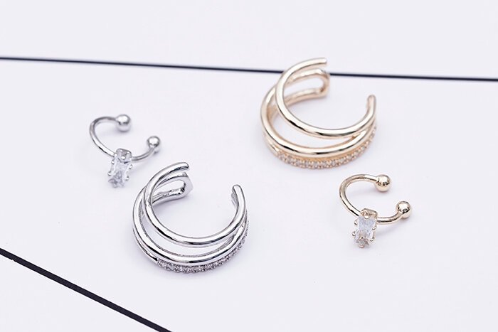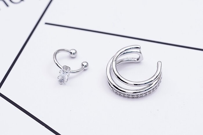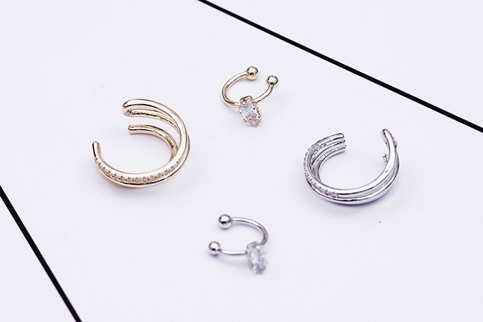極簡晶鑽×二套件耳夾組×共二色-第1張