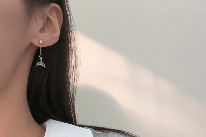 ▶名稱/藍晶人魚擺尾×不對稱吊墜耳環