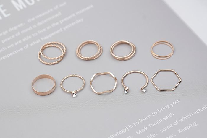 六角冷淡簡約細環×十四套件戒指組-第1張