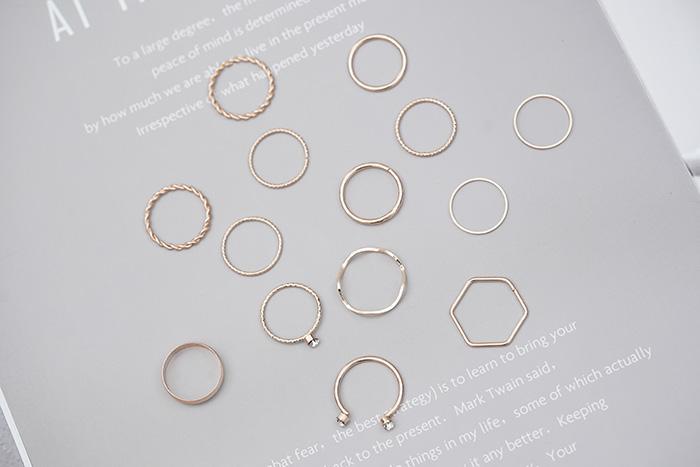 六角冷淡簡約細環×十四套件戒指組