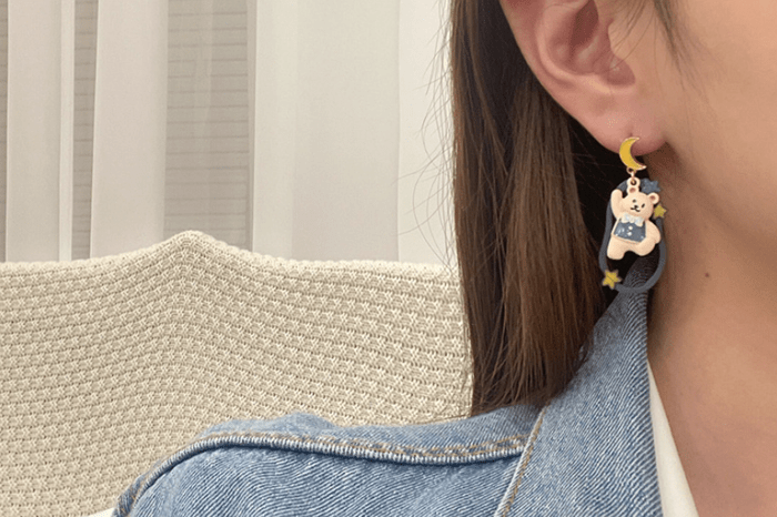 ▶名稱/星球飛天小熊×不對稱三角耳夾