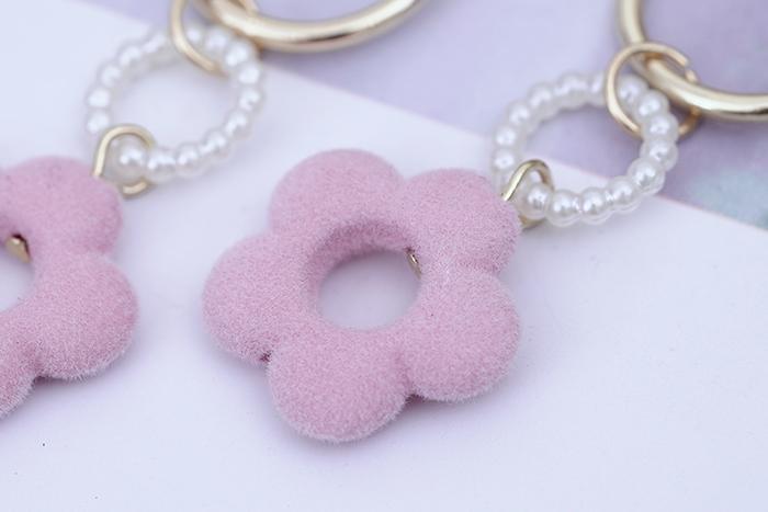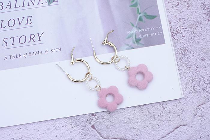 粉花植絨圓環珍珠×吊墜耳環-第4張