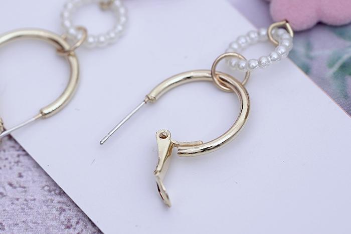 粉花植絨圓環珍珠×吊墜耳環-第3張