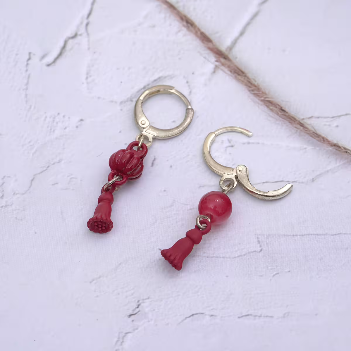 ▶名稱/中國結喜慶燈籠×三套件耳環組