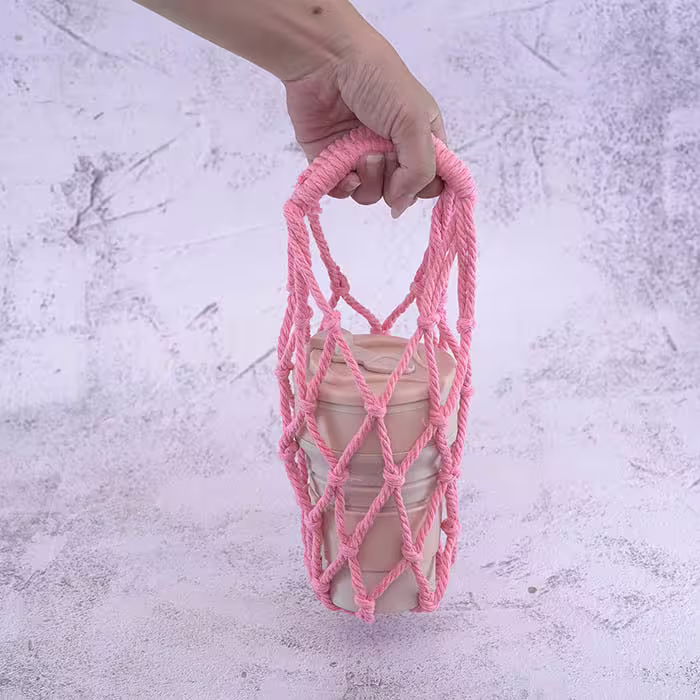 - 素色鏤空網編×飲料水瓶提袋×粉紅