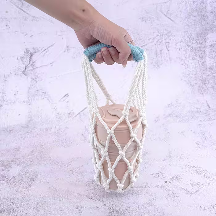- 撞色鏤空網編×飲料水瓶提袋×藍白