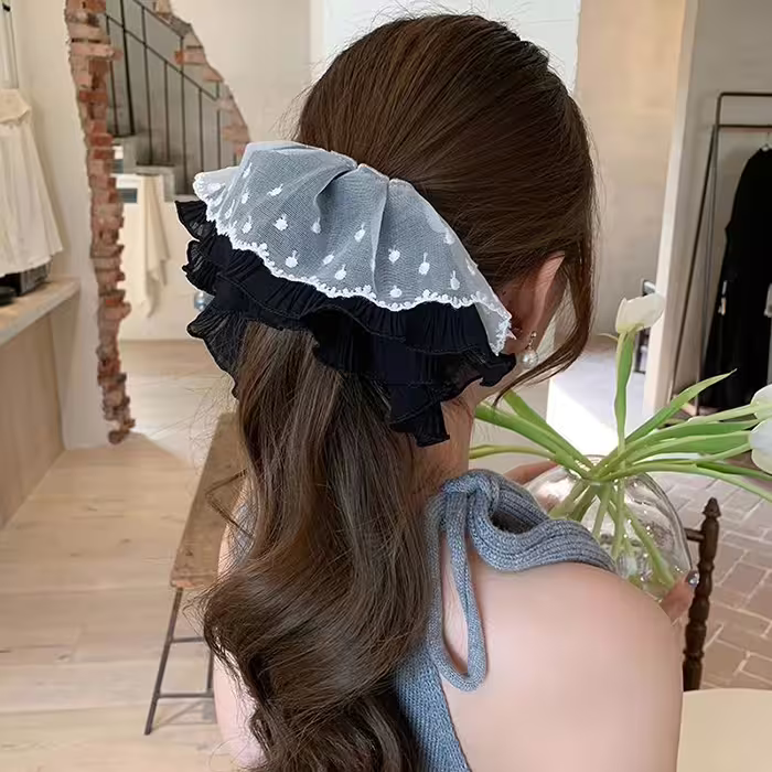 ▶名稱/黑白點點蕾絲裙擺×大腸髮束