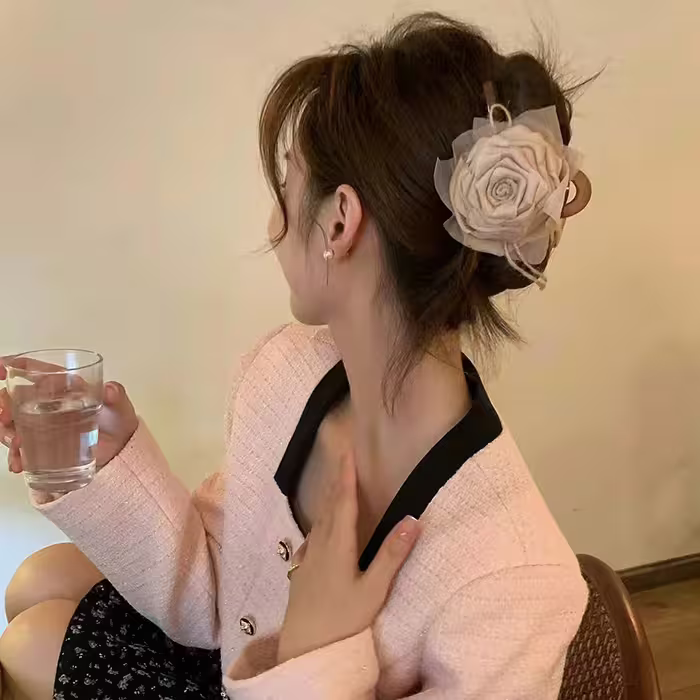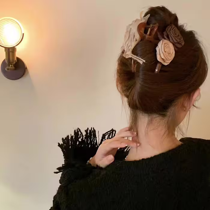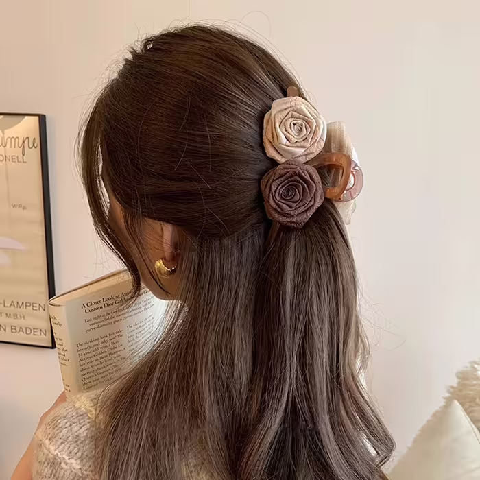 ▶名稱/棕咖玫瑰與薔薇×鯊魚夾