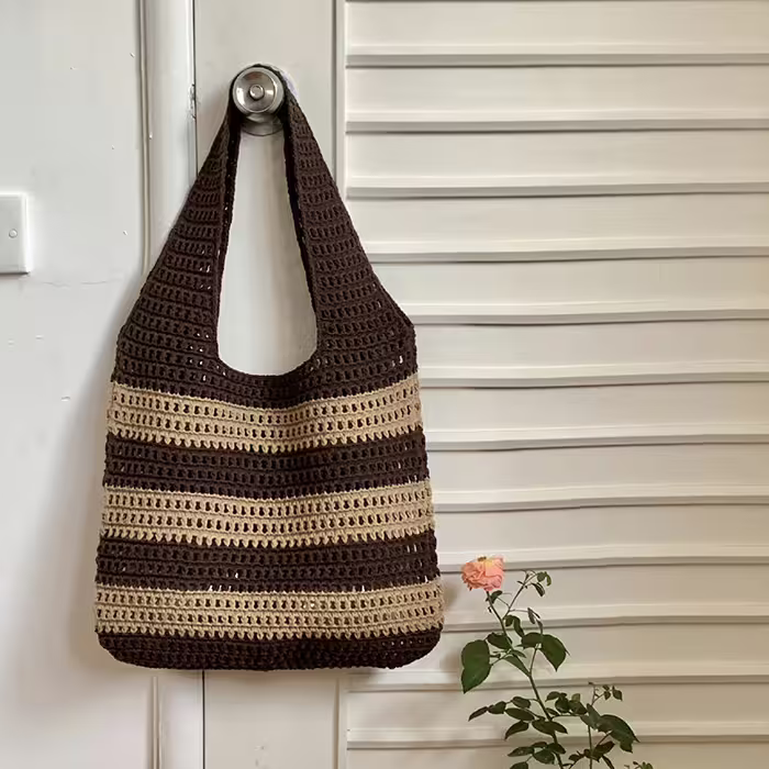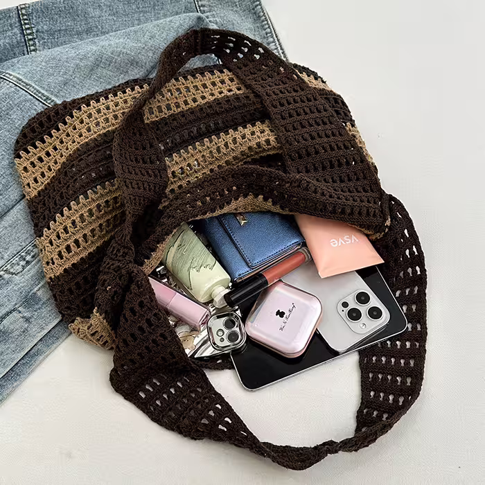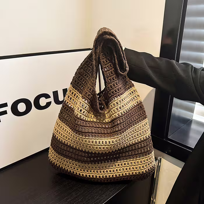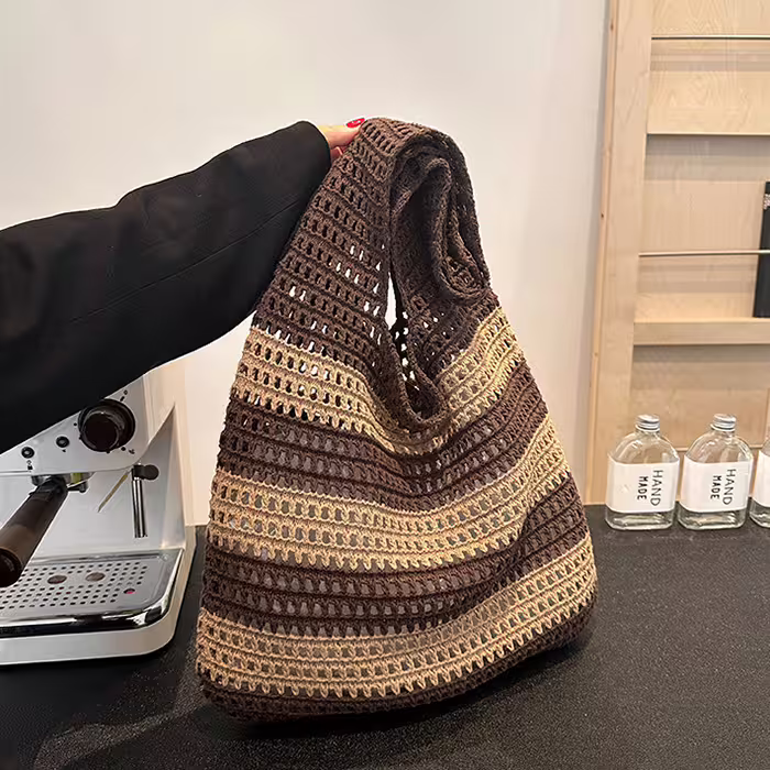 ▶名稱/條紋拼接鏤空針織×肩背包