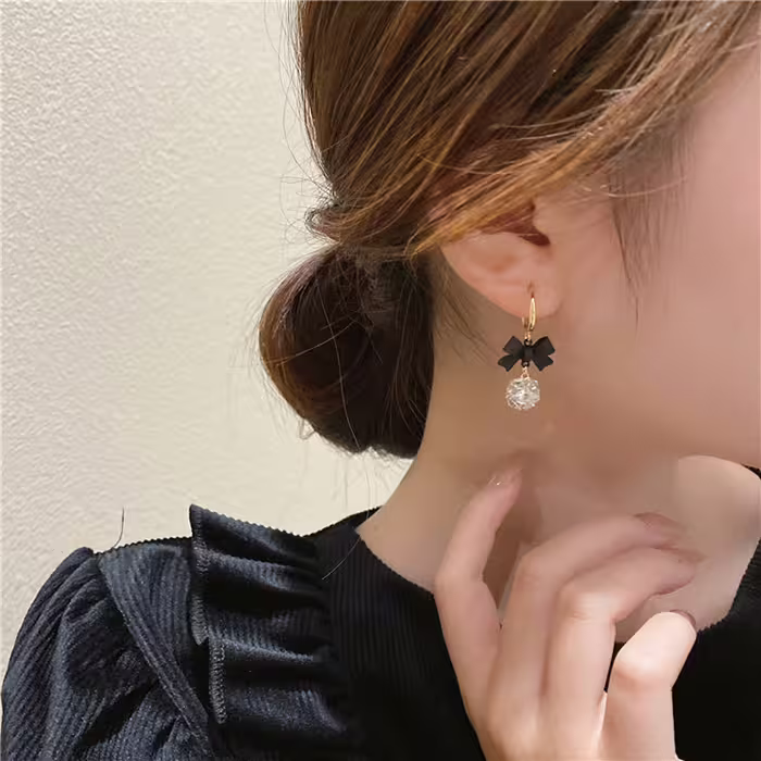 ▶名稱/黑領結C字輕奢晶鑽球×吊墜耳環
