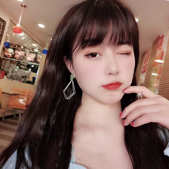 ▶名稱/綠點雙色長菱形×吊墜耳環
