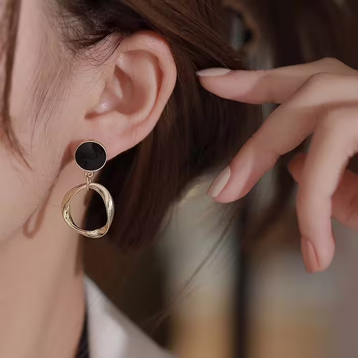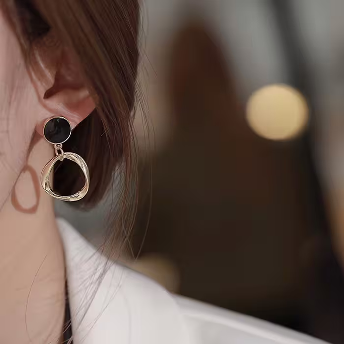 ▶名稱/黑圓圈不規則外框×吊墜耳環