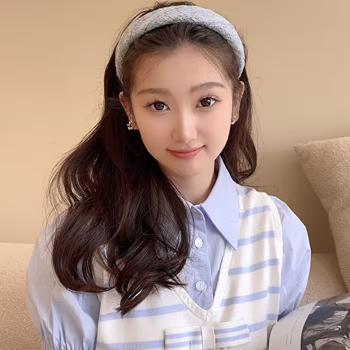 ▶名稱/藍白菱紋小香風毛呢×髮箍