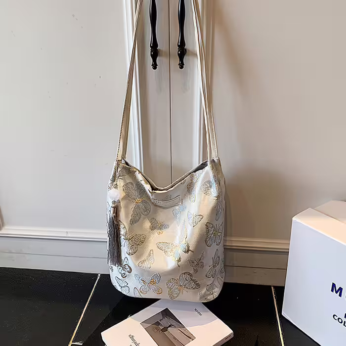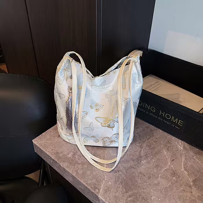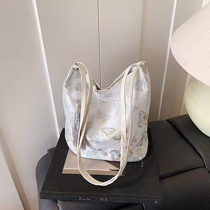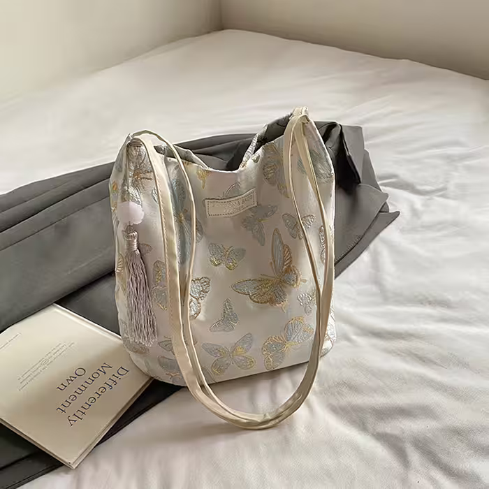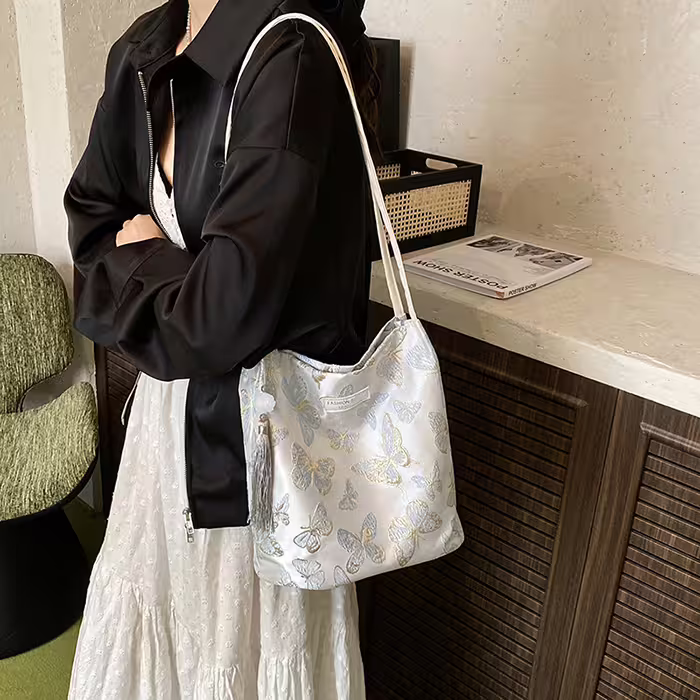 東方蝴蝶刺繡×肩背包×白色-第1張