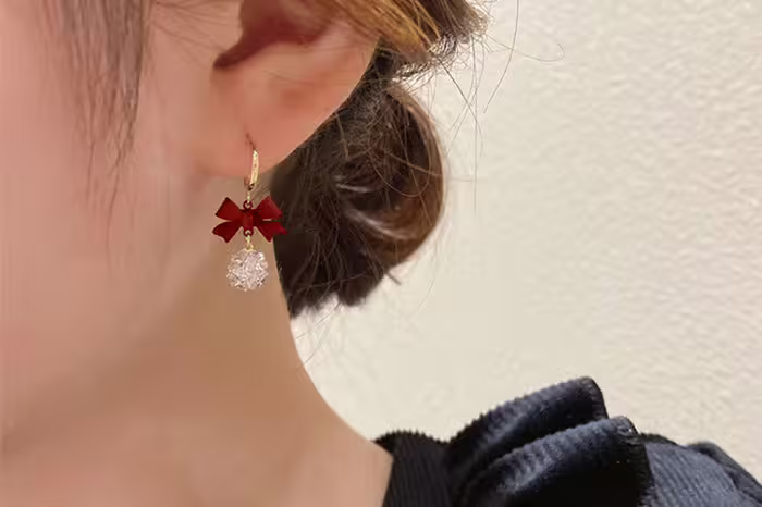 ▶名稱/紅領結C字輕奢晶鑽球×蚊香盤U型耳夾