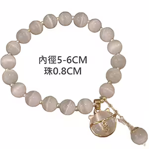 ▶名稱/白貓眼石招財貓×固定式串珠手鍊