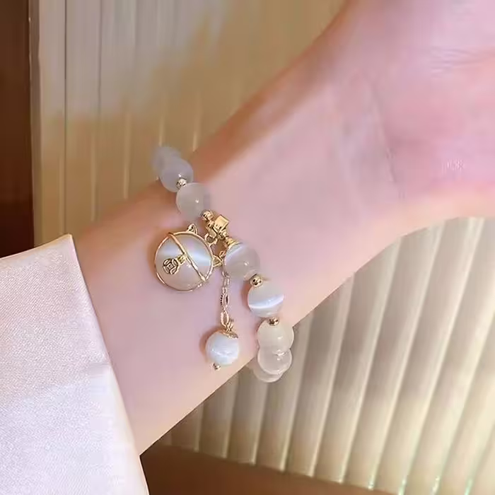 白貓眼石招財貓×固定式串珠手鍊-第5張