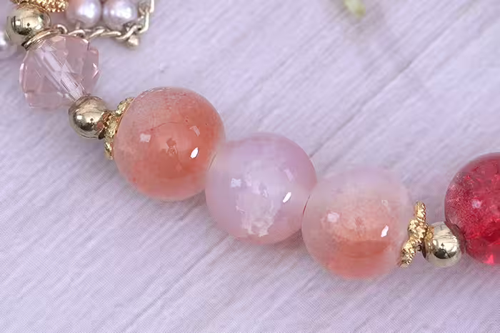 ▶名稱/橘紅流蘇碎珍珠×固定式串珠手鍊