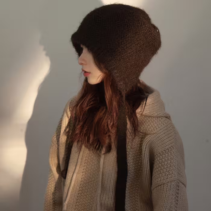 ▶名稱/素色毛線綁帶×毛帽