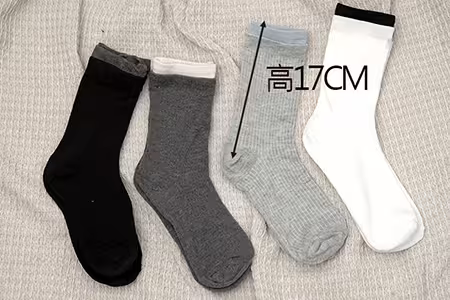 ▶名稱/假兩件包邊×中筒襪×四雙套件襪子組