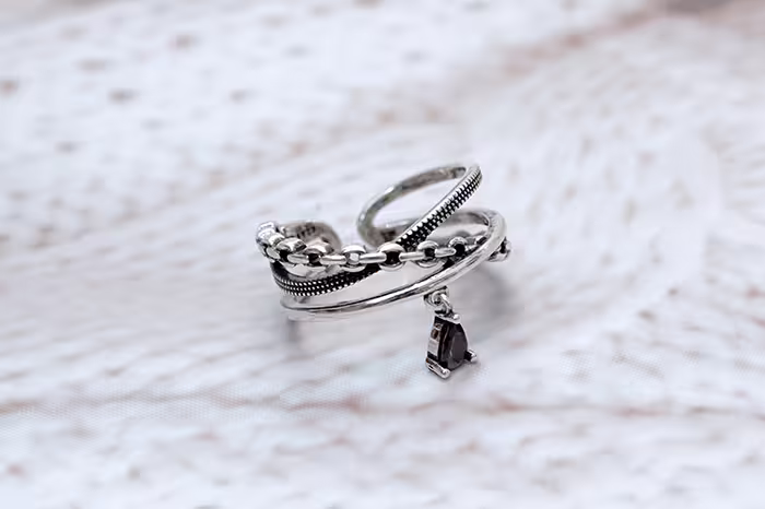 ▶名稱/多層黑眼淚×開口戒指