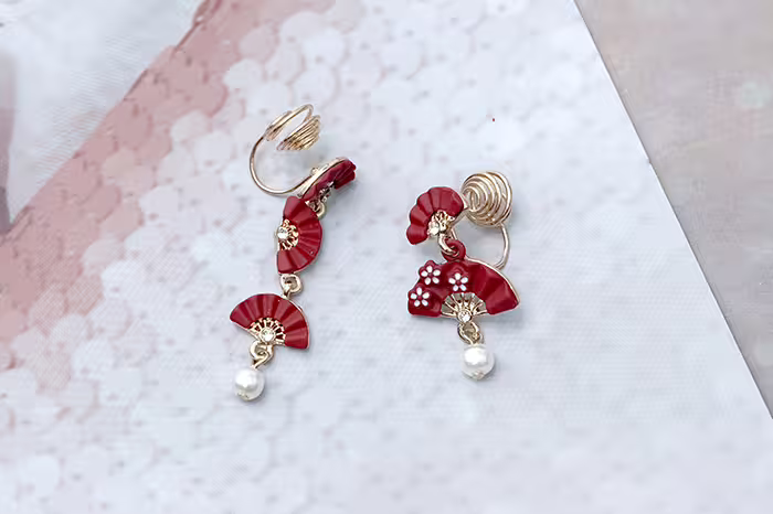 ▶名稱/梅映紅扇×不對稱蚊香盤U型耳夾