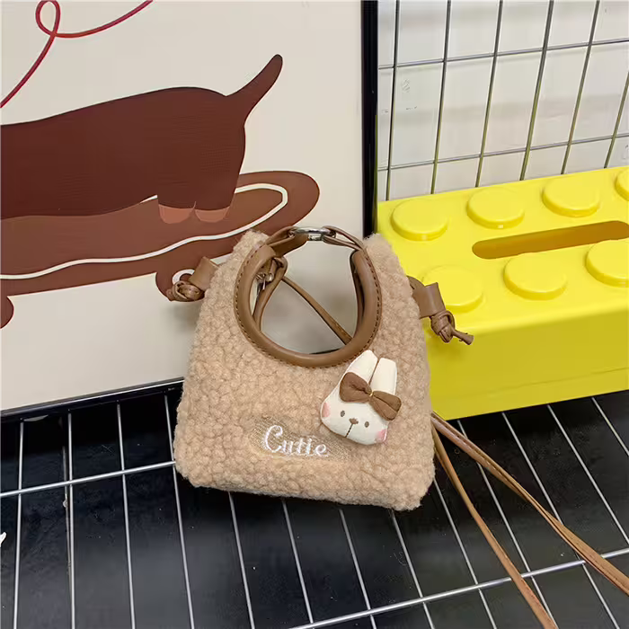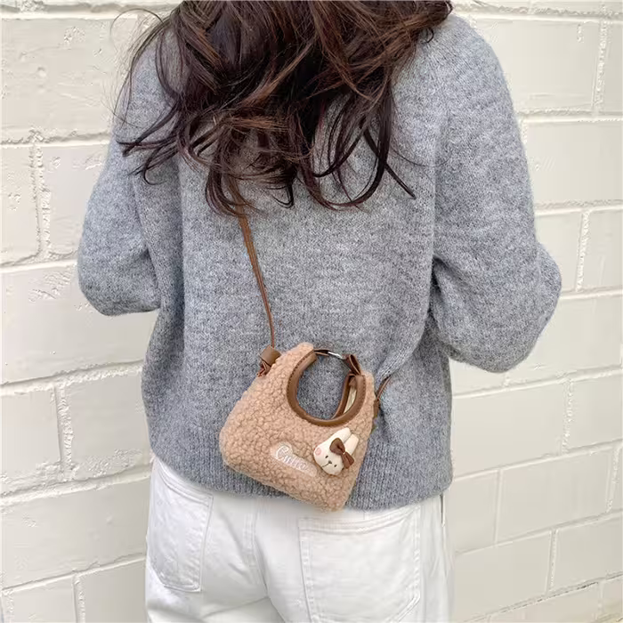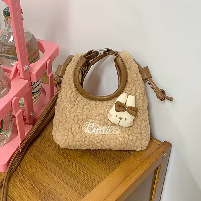 Cutie小兔羊羔捲毛×斜背包×卡其-第1張