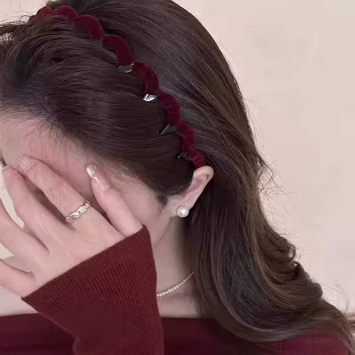 ▶名稱/紅絲絨素色×抓髮髮箍