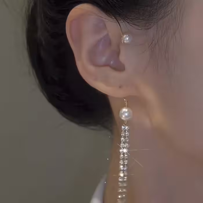 金色珍珠流蘇晶鑽×單邊耳掛-第1張