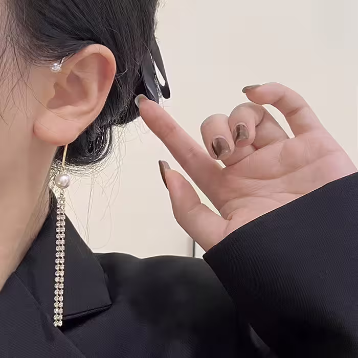 金色珍珠流蘇晶鑽×單邊耳掛-第5張