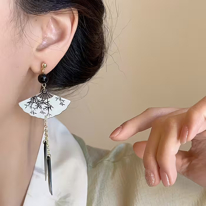 竹影古扇×蚊香盤U型耳夾-第1張