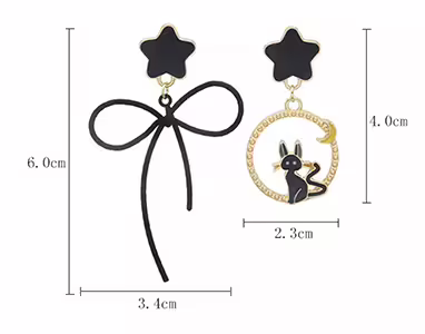 ▶名稱/黑貓線條蝴蝶結×不對稱吊墜耳環