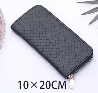 ▶名稱/編織壓紋×拉鍊長皮夾×黑色