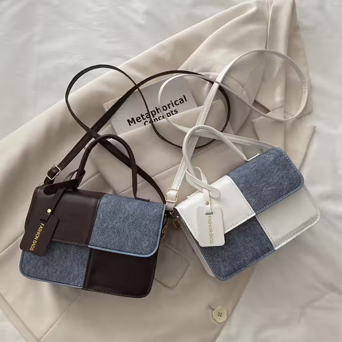 ▶名稱/牛仔單寧皮革撞色×斜背包