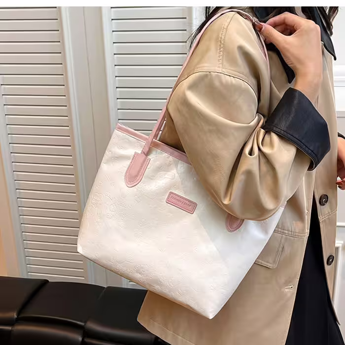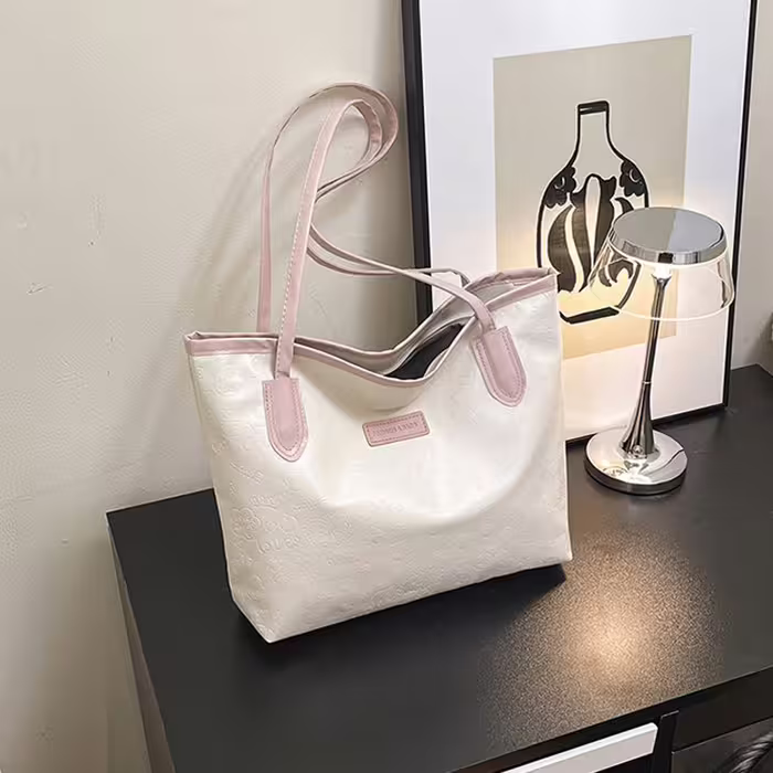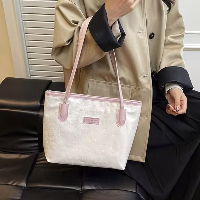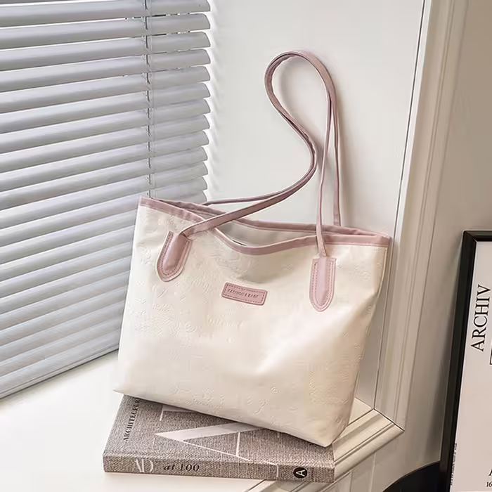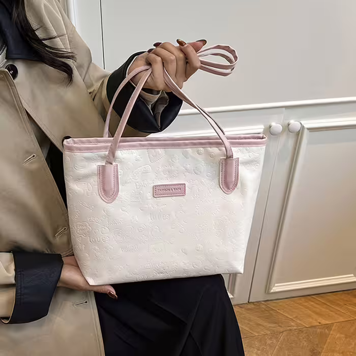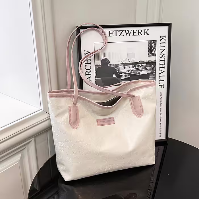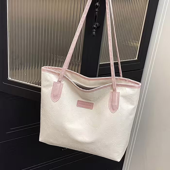 童趣壓紋包邊皮革×肩背包×粉紅-第1張
